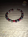 Виріб з бордових скляних намистини та гранчастого стеклярусу гармонійно поєднані зі сріблястими роз'єднувачами та фурнітурою. Вся композиція зібрана на міцному сріблястому біжутерійному тросику.Перед вами витончений браслет, зібраний з темних гранчастих намистин, що переливаються глибокими відтінками чорного, графітового й бордового. Бордові намистини та сріблясті вставки надають прикрасі ритму й благородної виразності, створюючи відчуття сили й стриманої елегантності. Цей браслет виглядає як талісман внутрішньої сили вогнб — стильний, зосереджений і сповнений внутрішньої глибини.