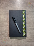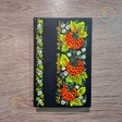 Обкладинка щоденника кожам., розмальований з двох сторін у стилі петриківський розпис, вкритий лаком.Перед вами щоденник для записів у витонченій обкладинці, оздобленій ручним розписом у традиційному українському стилі, де грона калини палають на глибокому темно-зеленому фоні як символ пам'яті, сили та безперервності роду. Орнамент із сокових ягід, зеленого листя та дрібних білих квітів звучить, мов тиха народна пісня, сповнена любов'ю до землі та життя. Цей виріб гармонійно поєднує унікальність, практичність і мистецтво, перетворюючи щоденник на емоційний акцент і справжній оберіг для думок та спогадів.