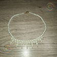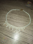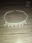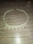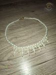 Виріб з білих перламутрових пластикових намистини гармонійно поєднані зі фурнітурою у золоті. Вся композиція зібрана на міцному білому біжутерійному тросику.Витончене намисто з перлинно-білих намистин поєднує класичну елегантність із делікатною декоративною грою форм. Центральна частина оздоблена каскадом дрібних підвісів, що м’яко спадають і створюють відчуття руху та легкого мерехтіння при кожному кроці. Золотисті акценти додають прикрасі тепла й благородства, підкреслюючи її вишуканий характер. Це намисто стане ідеальним доповненням як до вечірнього образу, так і до особливих урочистих подій.