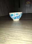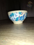 Керамічна піала, розмальована у стилі петриківський розпис, вкрита лаком.Витончена керамічна піала прикрашена ручним розписом у традиційному українському стилі, де синьо-блакитні квіти й павлини розквітають на теплому молочному тлі. Цей орнамент звучить як світлий оберіг — він наповнює простір гармонією, несе радість, красу та живу тяглість української народної традиції.